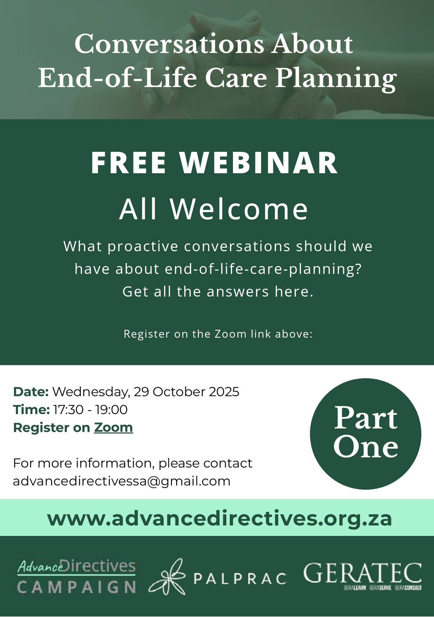 DignitySA helped the Advance Directives Campaign to launch a webinar series about advance care planning. The first conversation was held in October 2025 and led by Prof Rayne Stroebel of GERATEC together with and Dr Margie Venter of PALPRAC. To watch a recording of the webinar visit https://www.youtube.com/@advancedirectivessa